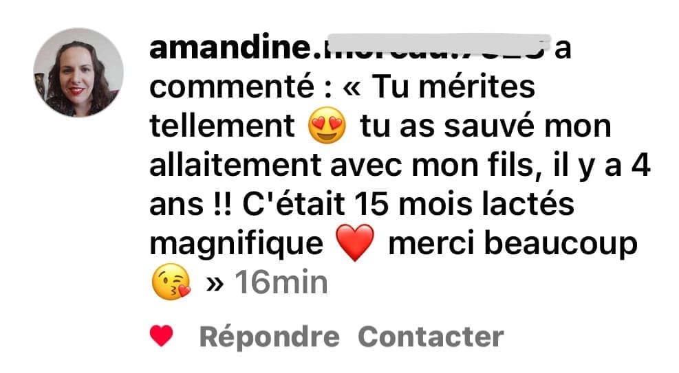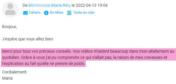 "Merci pour tout je pense sincèrement que vous avez sauvé mon allaitement"