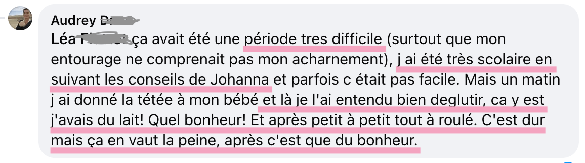 Audrey a vécu le bonheur d'entendre son bébé bien déglutir et retrouver un allaitement "qui roule"