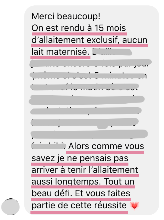 → Exemple : vidéo où je te donne mes conseils pour tirer ton lait sans priver bébé.