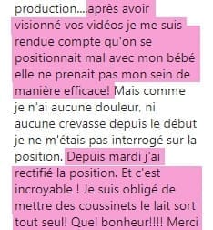 "Depuis mardi j’ai rectifié la position. Et c'est incroyable ! [...] le lait sort tout seul !!!!"